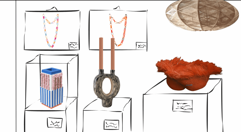 Besucherinnen und Besucher dürfen sich auf eine kuratierte Auswahl an Unikaten und Design-Objekten freuen, die ungewöhnliche Perspektiven eröffnen. Hier wird mit Material gespielt, experimentiert und gestaltet – von der Vase mit einem Loch als zentrales Designelement bis hin zu handgefertigten Schmuckstücken, die nicht nur schön, sondern auch provokant sind.